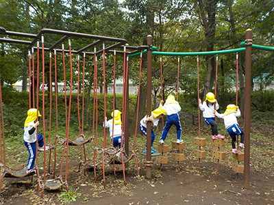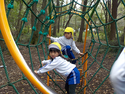 4歳児クラスは狭山市の智光山公園に行ってきました。 アスレチックに挑戦する子どもたちです。