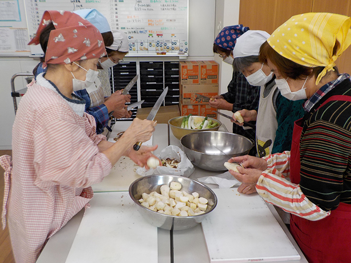 里芋などつるつるしたものを地域の方がお手伝いに来て切ってくれました。