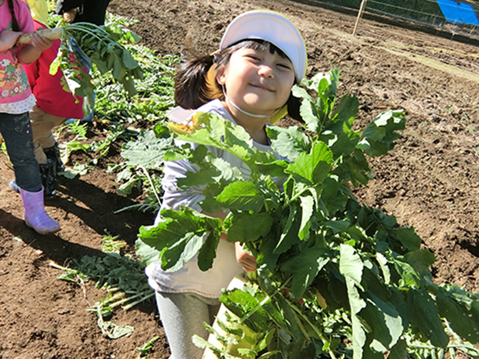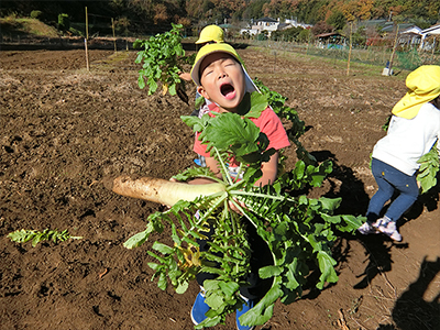重たい大根を必死に持っている姿が可愛らしかったです。