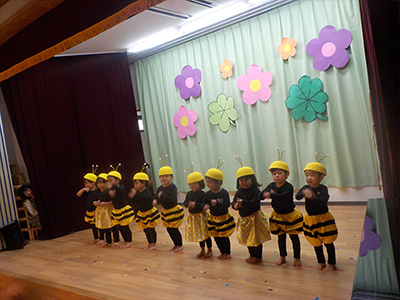 2歳児クラスはもう一つ。みつばちハニー!!蜂さんになって登場してくれました。