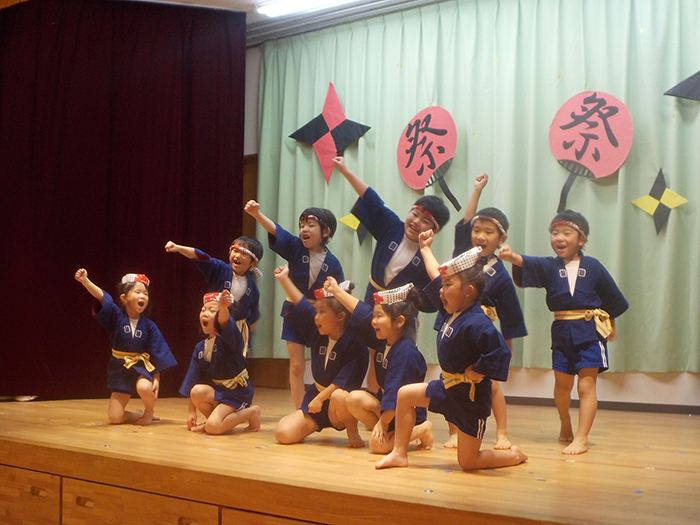 各クラス、いろいろな出し物をしてくれました。5歳児クラスはお祭り忍者も踊ってくれました。