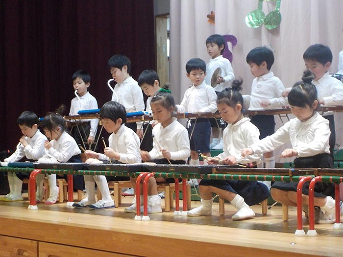 発表会最後は5歳児クラスの歌と合奏です。自信を持って演奏してくれました。