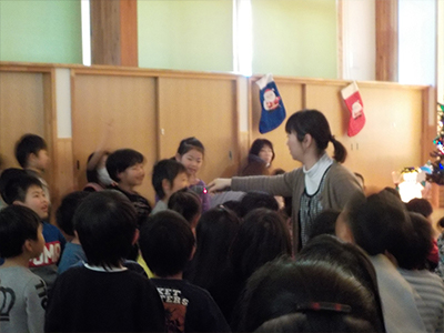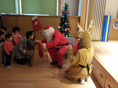 大きな袋の中には、みんなのプレゼントが入っていました。一人一人に手渡してくれました。