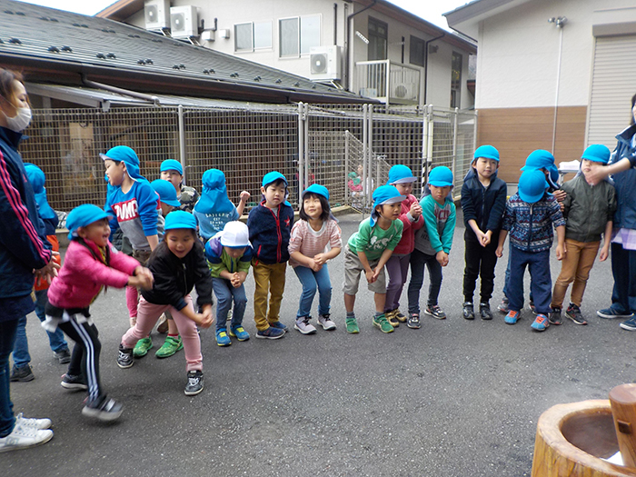 5歳児クラスが集合です。みんなで、よいしょ!よいしょ!!元気いっぱいかけ声を掛けてくれました。