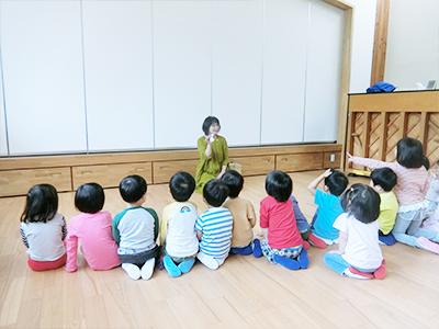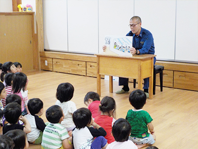 青梅消防署の方に来てもらい避難訓練を行いました。紙芝居も見せてくれました。