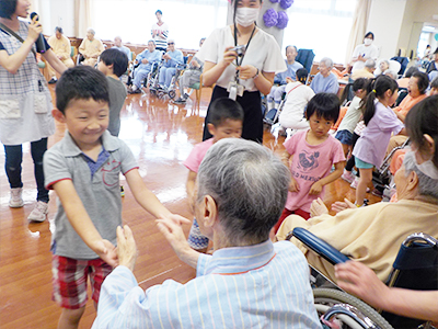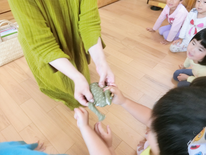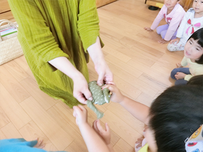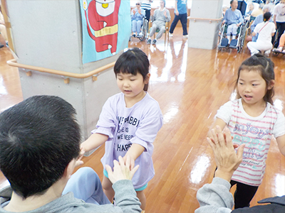 おじいちゃん、おばあちゃんとわらべうたで遊びました。
