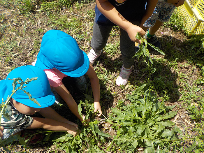 この場所をみんなで畑にしよう!と草取りから石拾い・・・。頑張っていましたよ。