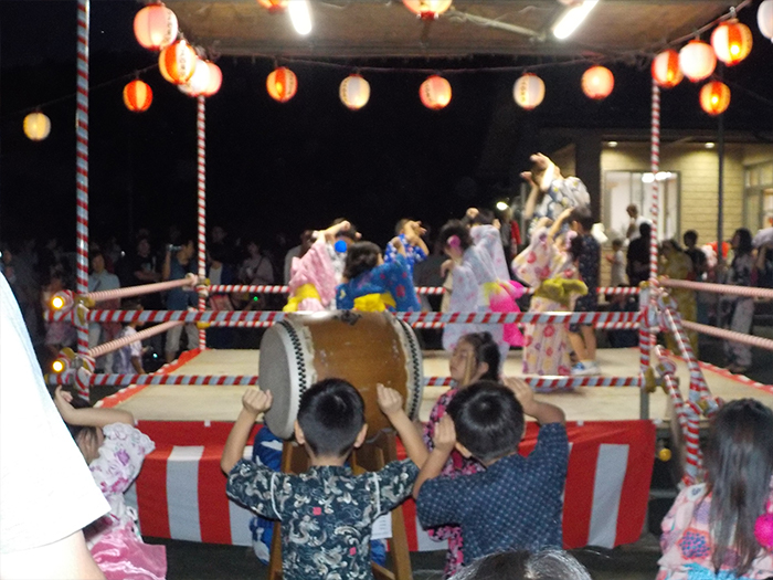 幼児クラスは順番にやぐらに上がり踊りました。太鼓は5歳児年長さんが叩いてくれました。