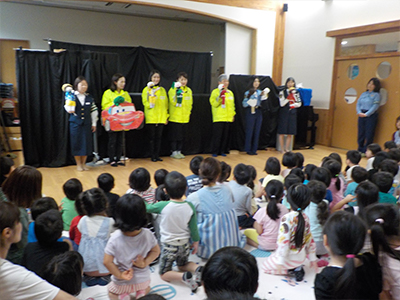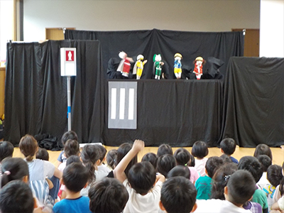 警察の方と交通安全協会のみなさんが来て、信号・横断歩道の渡り方など交通ルールについて教えてくれました。。