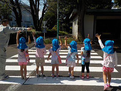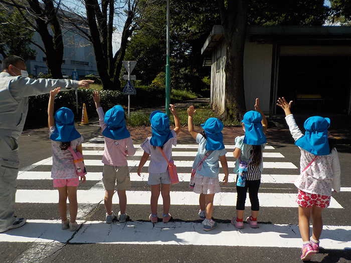 5歳児が交通公園へ行ってきました。横断歩道の渡り方を教えてもらったり・・・。