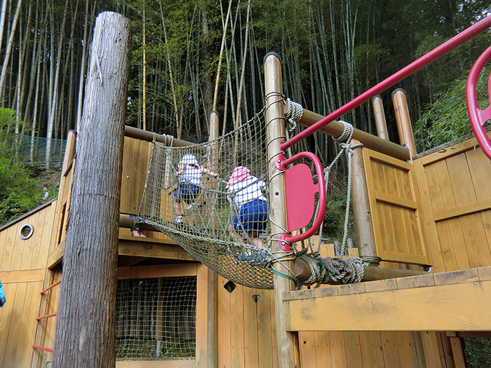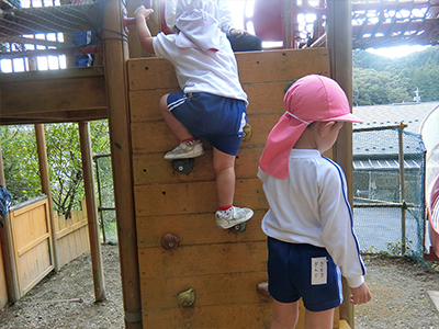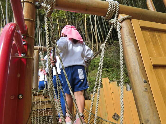 3歳児クラスが裏山のアスレチックであそびました。