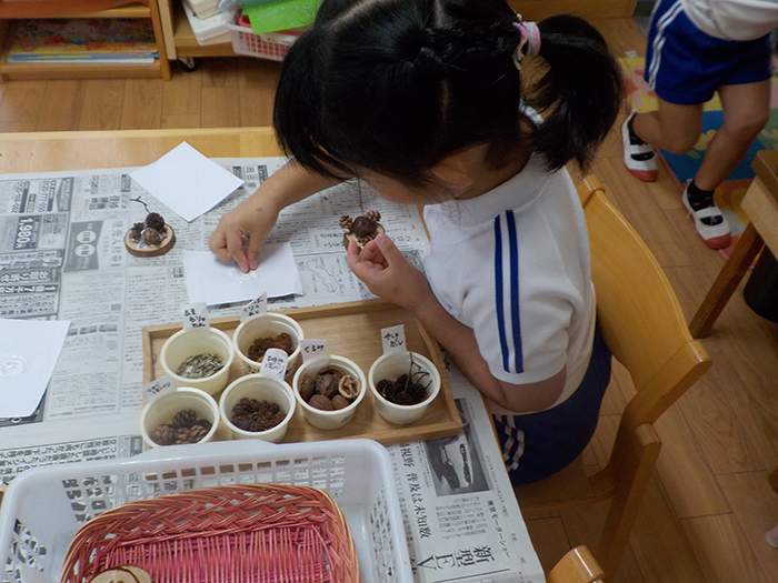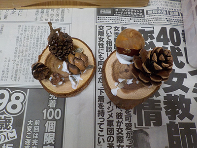 思い思いの木の実で素敵な飾りができました。