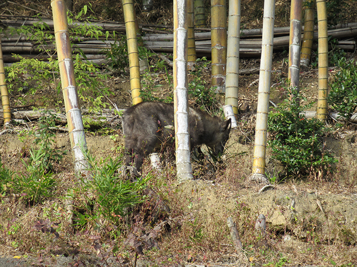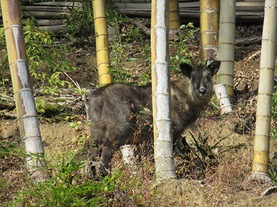 ニホンカモシカです。ひょっこり顔を見せてくれることがあります。こっちをジーッと見ていました。