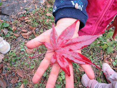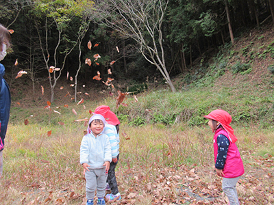 葉っぱがひらひら~!!夢中で遊んでいました。