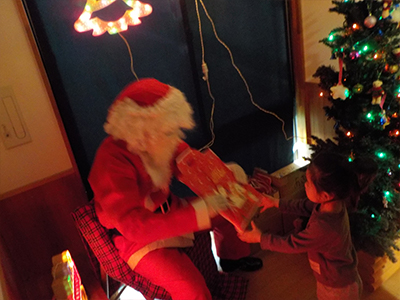 園長先生サンタさんからプレゼントをもらいました。