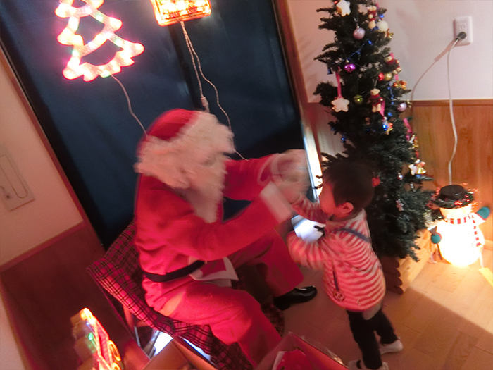 サンタさんのお顔をじ~っと見つめている子もいました。
