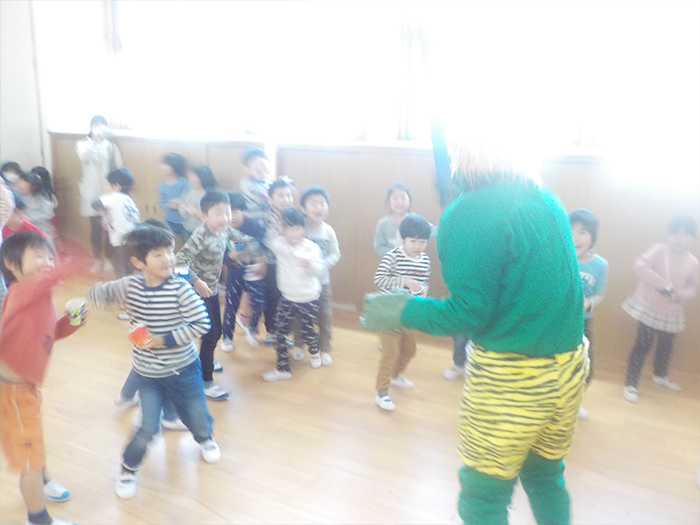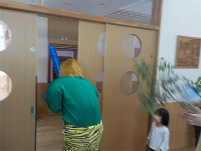 鬼の登場に大きいクラスの子は必死に豆を投げてくれました。