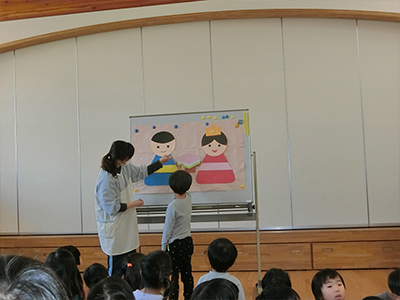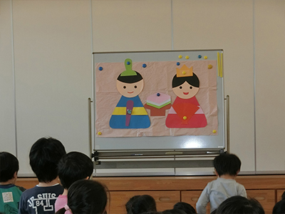 予定していたバルーンアートは中止となりましたが、ホールに集まりひな祭り会を行いました。