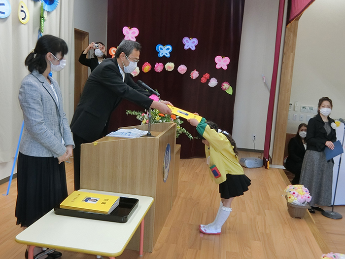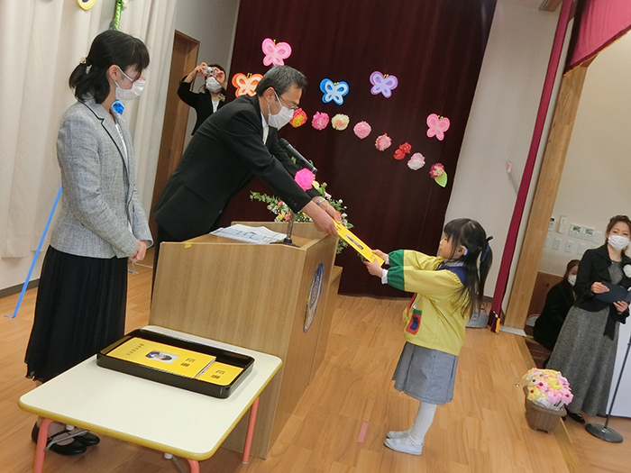 園長先生から一人一人渡して頂きました。