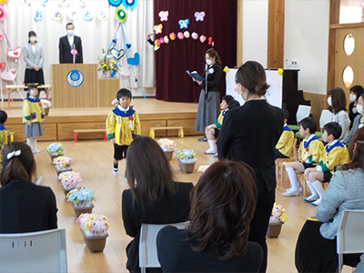 年長さんの卒園の時期です。お別れ会も縮小しての会となりましたが、年長さん一人一人が主役です。