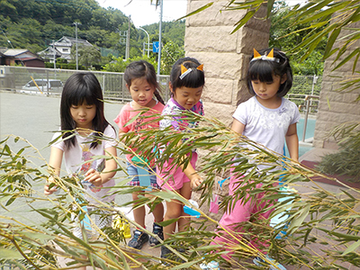 どんな願い事かな?年長児に聞くと「コロナがなくなりますように・・・。」「お出かけ出来るようになりたい!」との願い!子どもたちもこの状況を理解しながら頑張っているのだな。と感じました。