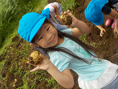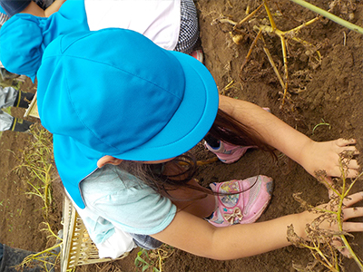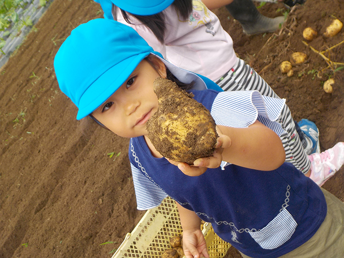大きなじゃがいもが土の中から出てきました。大興奮の子どもたちでした。