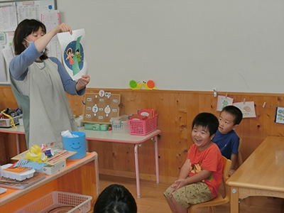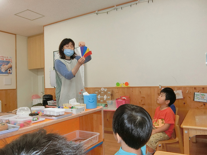 いつものように、みんなで集まることは出来なかったのですが、クラスで七夕についてのお話を聞きました。