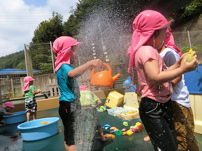 小さいクラスの子も水を怖がることなく大喜びでした。