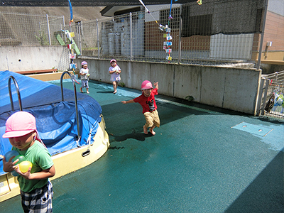 暑い中、元気いっぱいの子どもたちです。