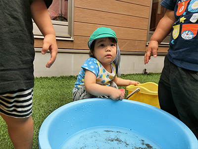9月に入っても暑い日が多く子どもたちは水遊びが嬉しそうでした。