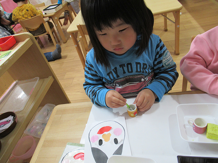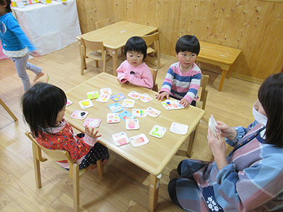 2歳児クラスです。先生が何て言うのかな??真剣に聞いていました。