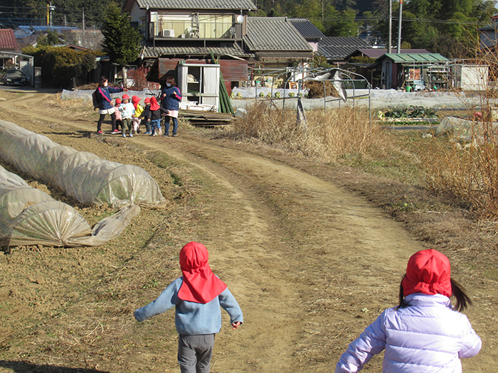 畑の中の道をみんなで走って楽しみました。今年もみんなで楽しく過ごしていきたいと思います。