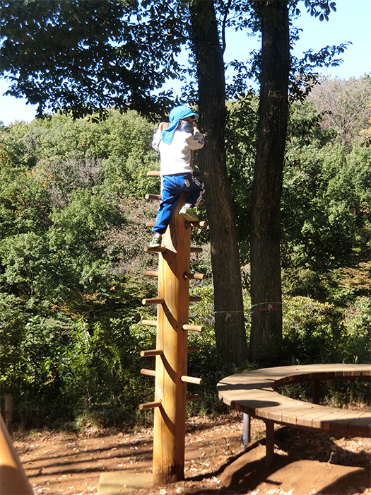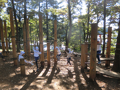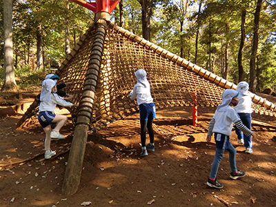 園バスに乗って年長児が六道山公園のアスレチックへ行ってきました。