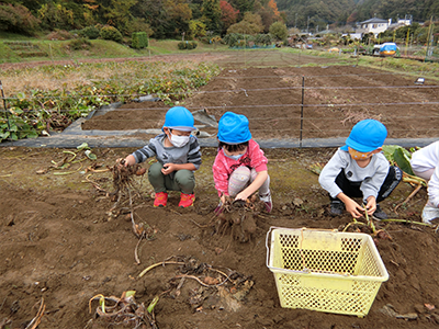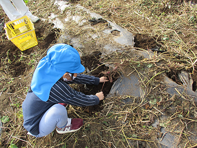 年長さんが植えた里芋が収穫の時期を迎えました。