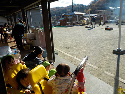 0歳児クラスも見学に来てくれました。美味しそうな匂いがしたかな?