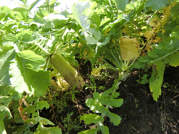 小さかった赤い種がこんなに大きな大根になりました。
