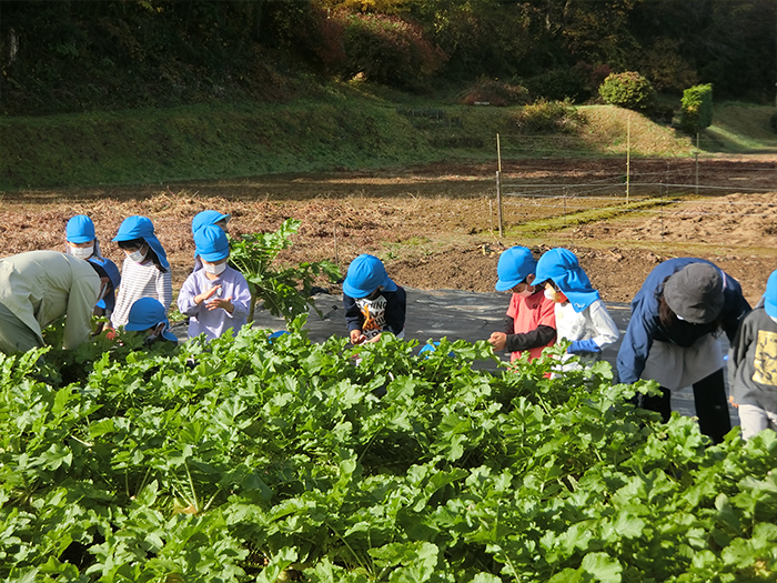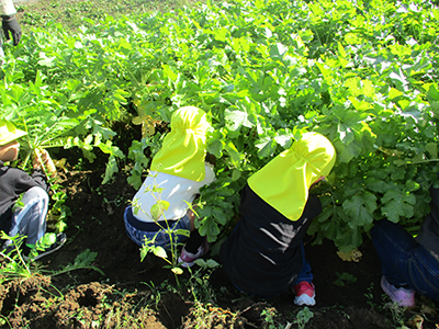 年長さんは何本も何本も収穫して運んで・・・。たくさんお手伝いしてくれました。