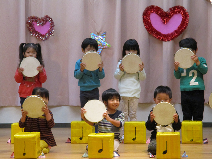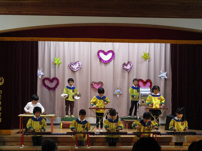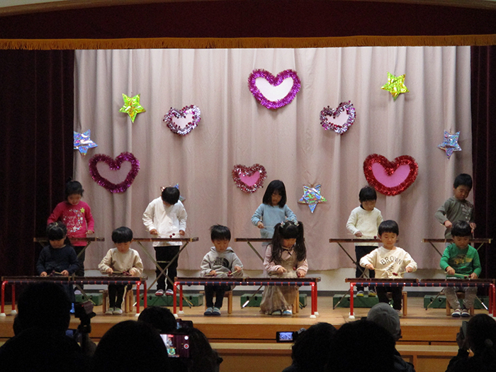 木琴で『いつも何度でも』を演奏しました。ちょっと緊張して前を向けないお友だちもいましたが、頑張って演奏できました。