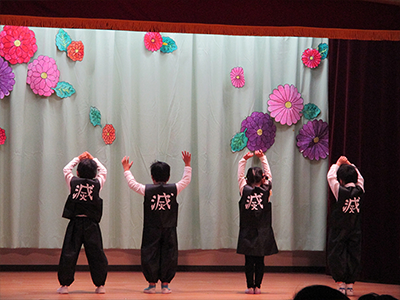 『滅』の文字が凛々しく鬼滅の刃の曲を踊りました。表情も凛々しく曲の世界に入り込んでいました。