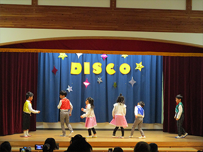 カラフルな衣装で『ダイナマイト』を踊りました。早いリズムでしたがみんな踊っていて本当に楽しそうでした。
