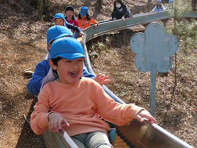 地元をぐるっと歩き、最後は花木園へ・・・。ローラー滑り台はみんな大好きです。
