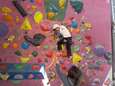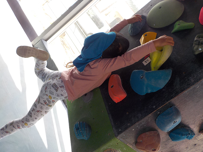 向きを変えてハイポーズ!余裕の表情でした。来年度より年長児が月に1回ボルダリングに通わせて頂けることになりました。今から楽しみです。