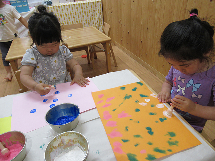 好きな色を自由に選んでポンポンポン・・。楽しそうでした。