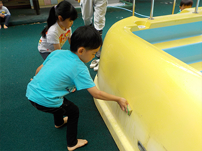 プールの中だけでなく、外も一生懸命に磨いてくれました。