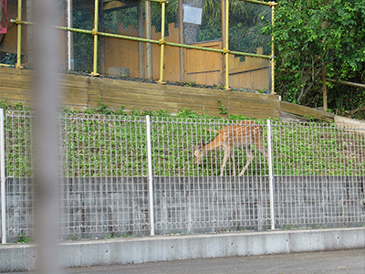 裏山のアスレチック前まで鹿が降りてきて、草を食べていました。