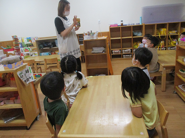 今回は、クラスごとに風水害についてのお話をしました。みんな真剣に聞いてくれました。