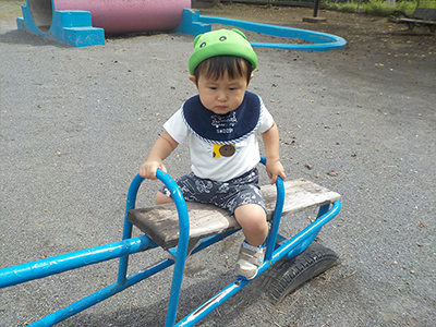 シーソーにも乗ってみました。動かすのはちょっと無理だけど何でも挑戦してみます。