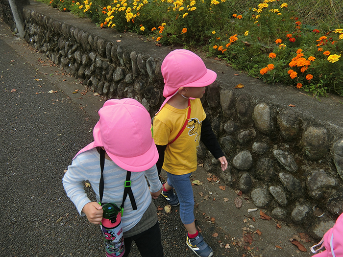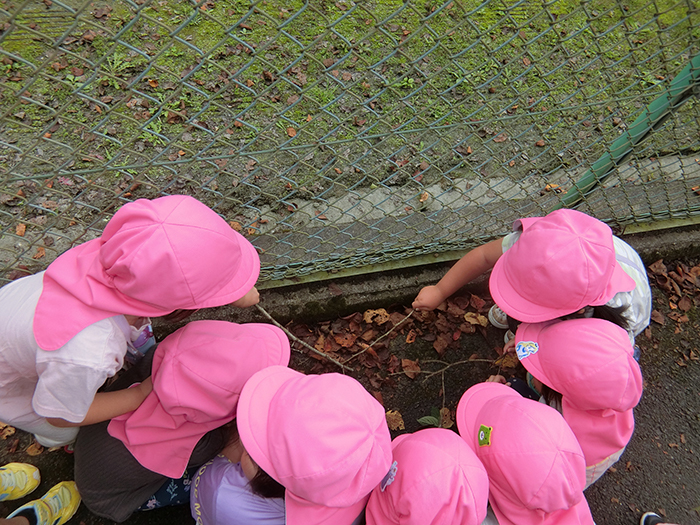 虫を発見するとみんなで観察!見てみてー!夢中です。