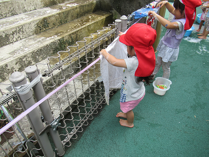 洗った布は広げて干します。綺麗になって気持ち良さそうでした。
