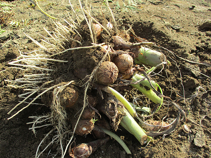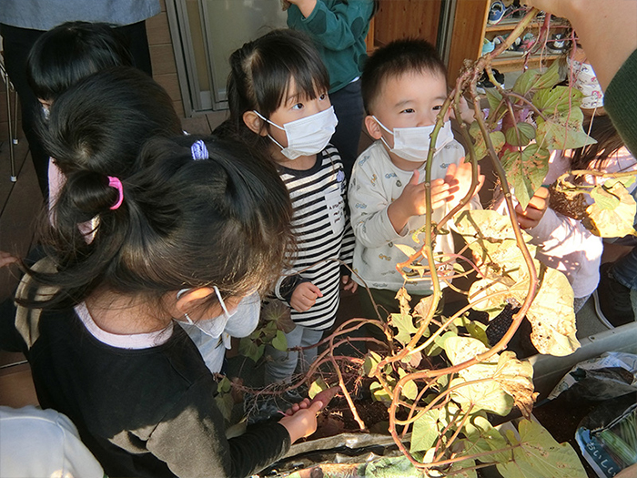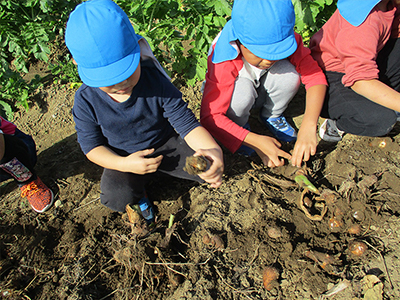 保育園の畑で育った里芋の収穫です。年長児が掘ってくれました。